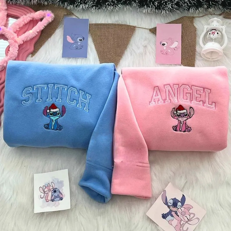Bluza/Koszulka dla par z haftem «Świąteczna Para - Stitch i Angel»