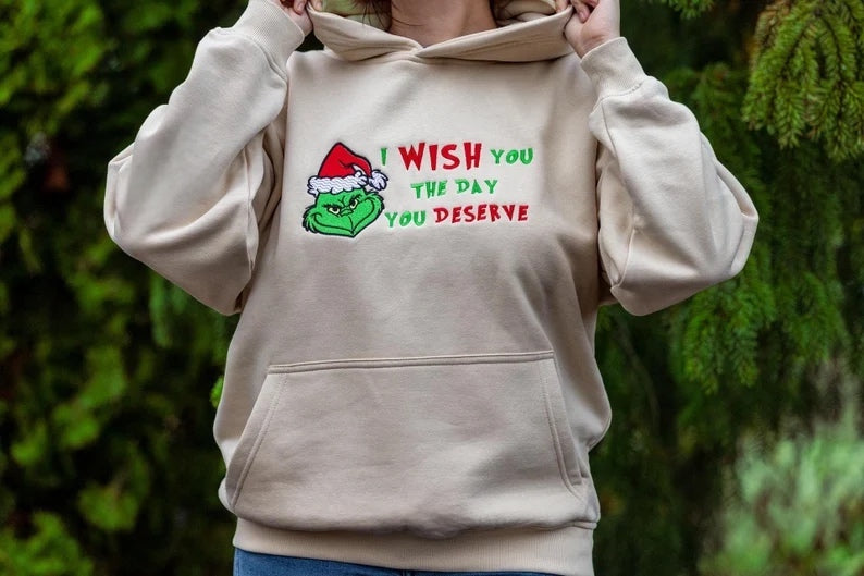 Bluza/Koszulka z haftem «Grinch - I WISH YOU THE DAY YOU DESERVE»