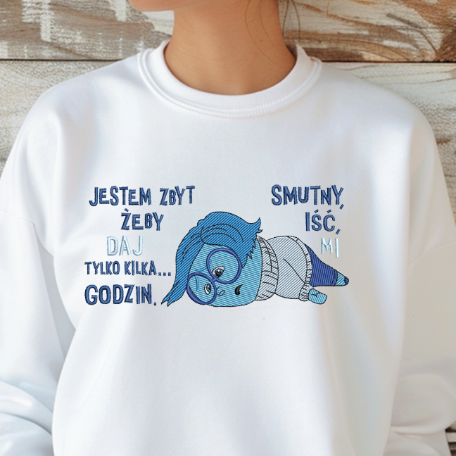 Bluza/Koszulka z haftem – postać Smutek (Sadness) z filmu «W Głowie Się Nie Mieści / Inside Out» z tekstem